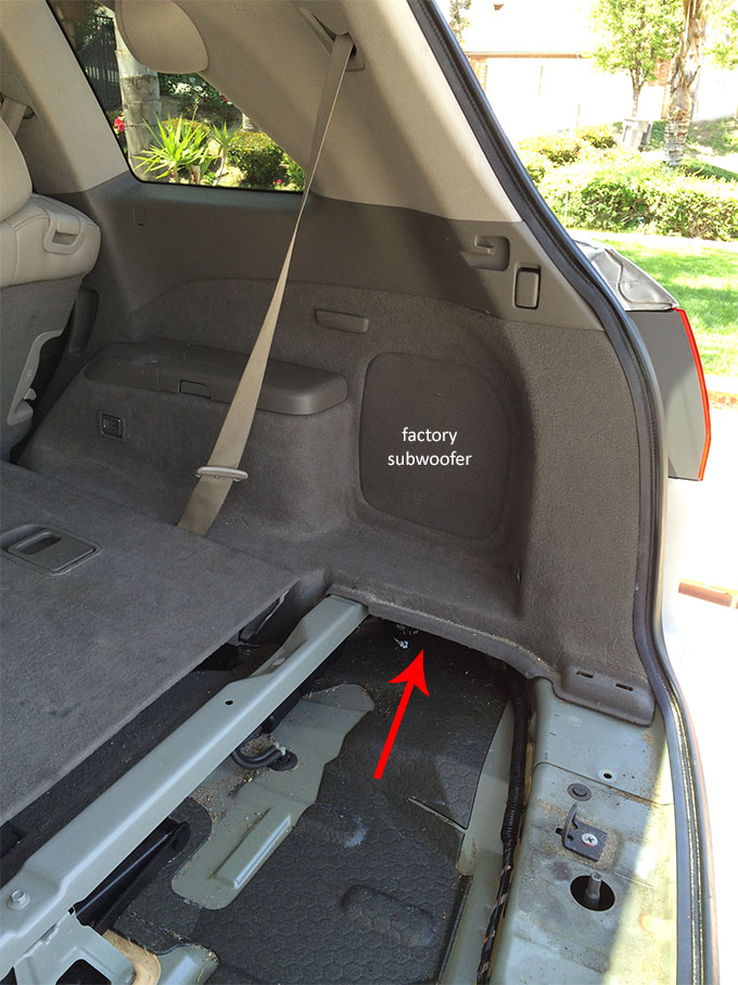 Locate the SAT/XM receiver inside the subwoofer enclosure